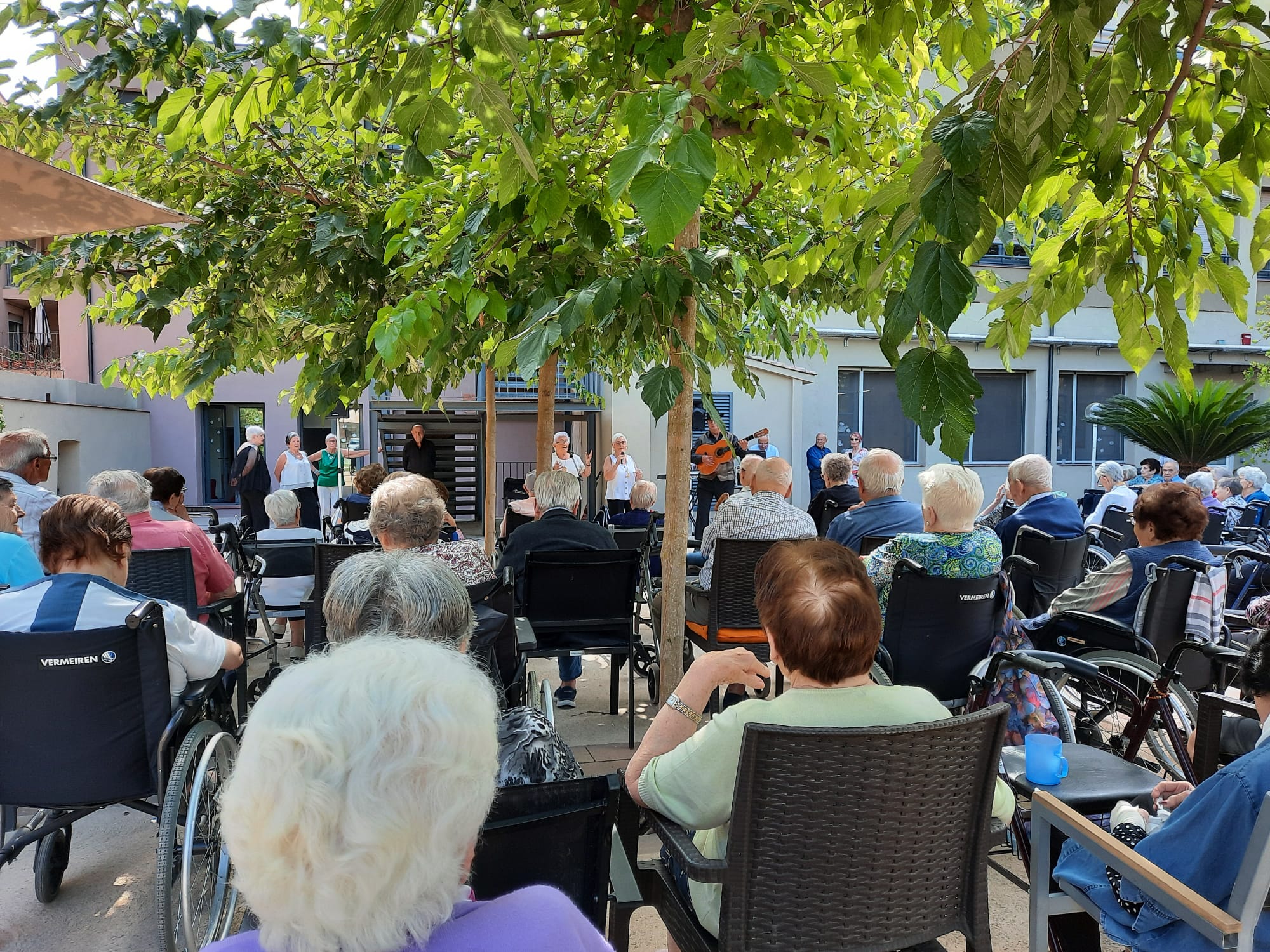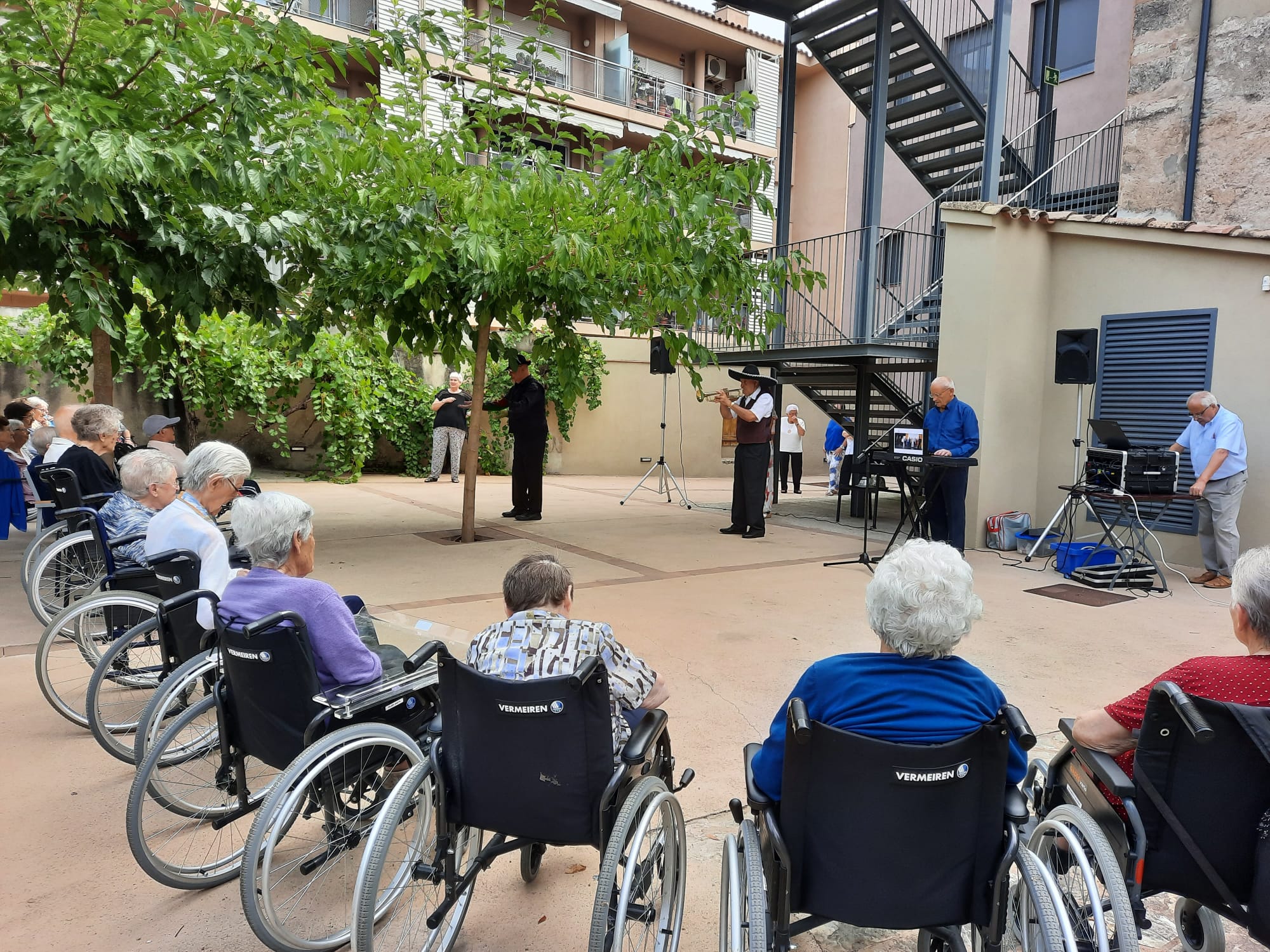 Fa uns dies vàrem tenir la sort de gaudir d’unes actuacions musicals dels tot especials. Ja sabeu que des del Sagrat Cor tenim una sensibilitat especial per la música. Ens agrada i veiem que a través d’ella connectem, experimentem, compartim i ens fa més feliços. Per aquest motiu vàrem convidar a dos grups banyolins. D’una banda, el Casal d’avis de Porqueres i, de l’altra, l’associació Junts i endavant, els Tocats per la Música, ens vàrem regalar dues actuacions musicals molt especials. Fent playback, vàrem cantar i recordar cançons populars i cançons d’època que ens vam emocionar.