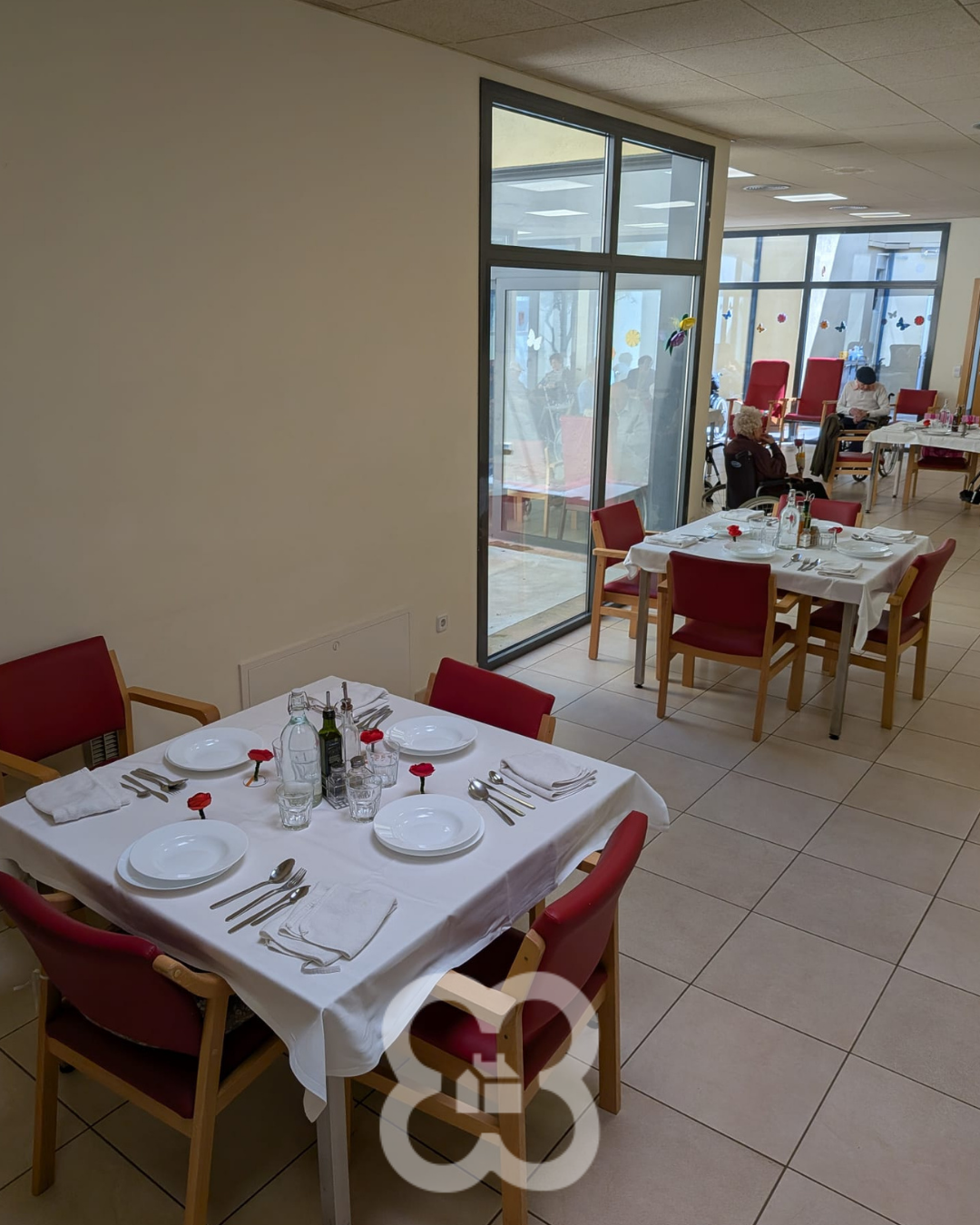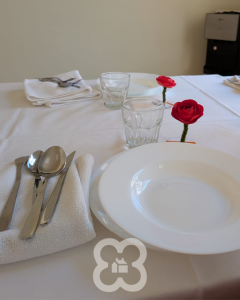 Quan va arribar l’hora de dinar, al menjador, les taules lluïen precioses, decorades amb els detalls florals que els mateixos residents han estat preparant durant les últimes setmanes amb molta dedicació i estima.