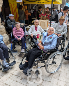 Durant el matí, alguns residents van sortir a fer una volta pel centre de Banyoles. El poble estava preciós. Tot ple de parades de roses i llibres que ens recordava, un cop més, que aquesta és una de les festes més boniques que tenim. Durant el passeig vam poder respirar l’ambient festiu dels carrers, veure les parades de llibres i roses i compartir una estona agradable fora de la residència. També va ser una oportunitat per a retrobar-nos amb coneguts i amics i felicitar-nos la diada.